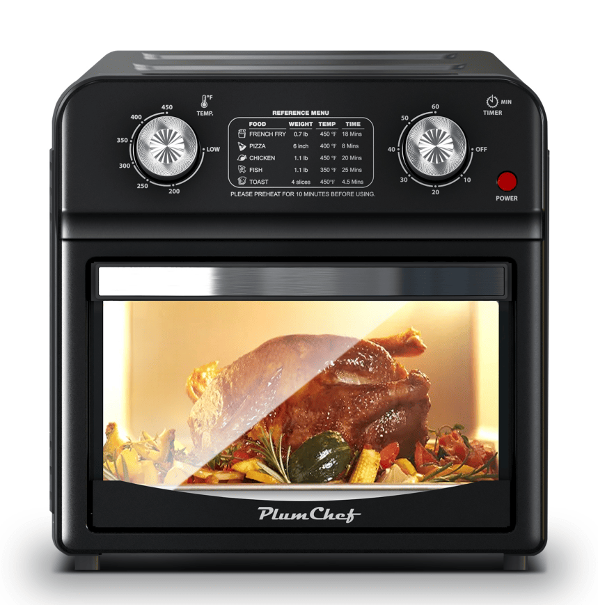 SKU: W1002P292365 12.5 Quotation 7-in-1 Convection Oven, 1500W,5 preset menus, pizza, baking, roasting, grilling, toasting, dehydration, defrosting, 11.8L smart oil-free cooking air oven, separate oil filter, 360° air circulation, timer and non-stick pan, low-fat cooking, mechanical knob, non-stick basket, heat-resistant handle, multi-hole cooling