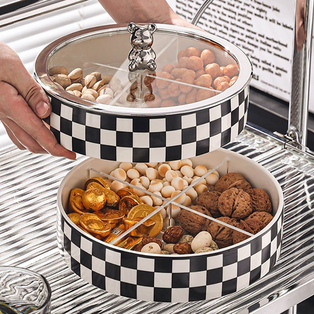 Make a statement in your space with this stylish and functional serving tray, which is perfect for your entertaining, kitchen, pantry, or parties. Featuring the checkerboard design, it makes a beautiful focal point for any room in your home. Double-layer with 8 compartments keeps the food fresh and tasty. Equipped with a lid, it can effectively keep food fresh for a long time. Ideal for serving cheese, appetizers, fruit, or snack. Only the lid is not suitable for dishwashers, please wash them by hand.
