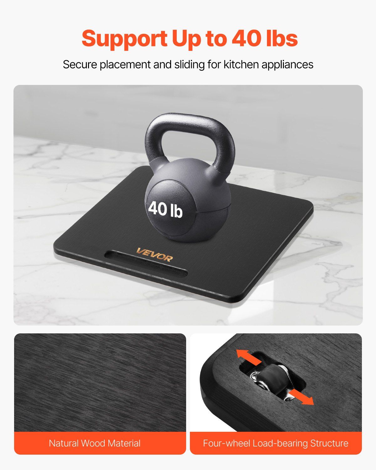 Made of durable material with a 0.7-inch thick design, this appliance slider supports up to 40 lbs. It's ideal for heavy kitchen appliances, making adjustments easy without wobbling.