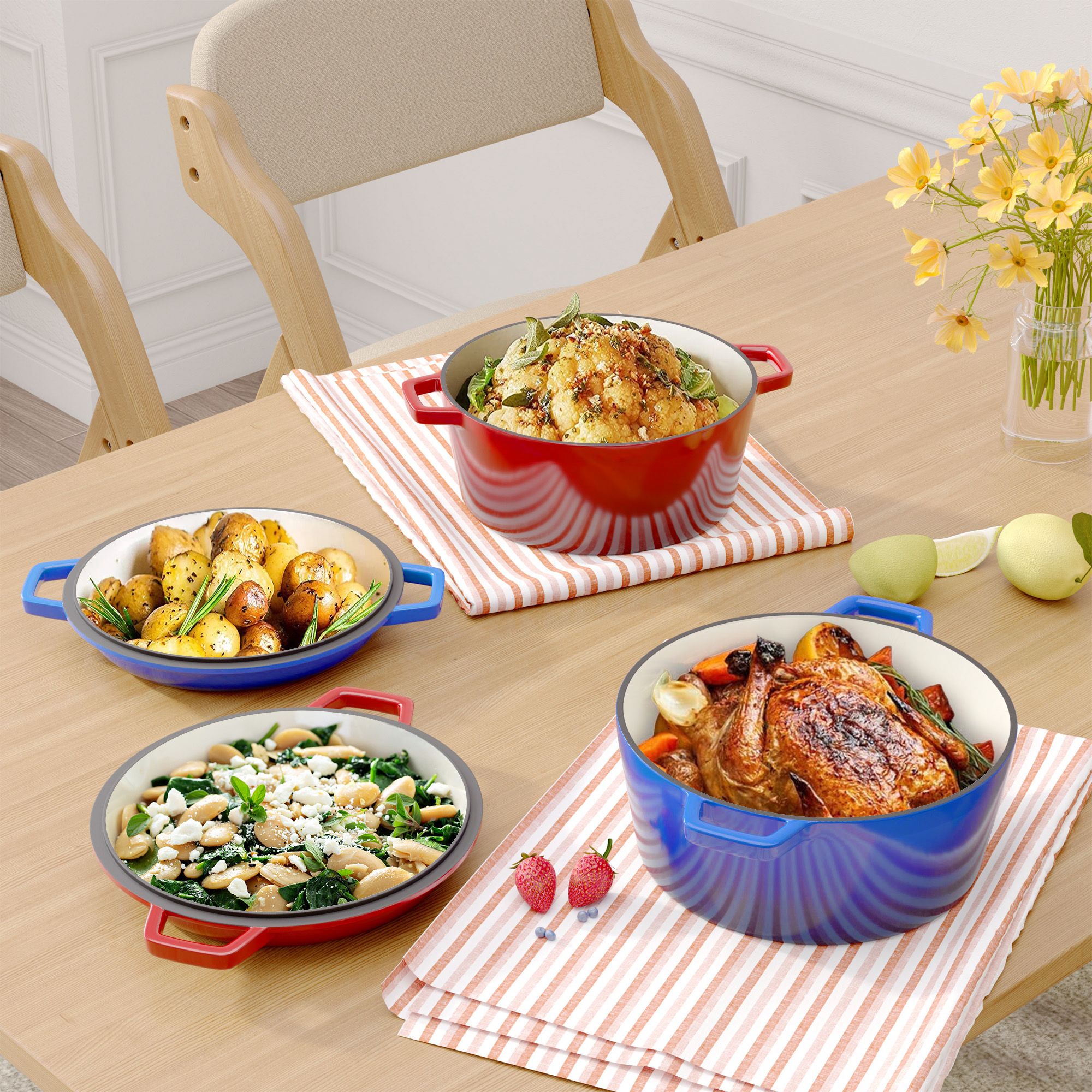 Enameled Cast Iron Dutch Oven with Serving Lid + ENCLOSED THERMAL CIRCLE Design Enameled Cast Iron Dutch Oven with Serving Lid + ENCLOSED THERMAL CIRCLE Design Enameled Cast Iron Dutch Oven with Serving Lid + ENCLOSED THERMAL CIRCLE Design